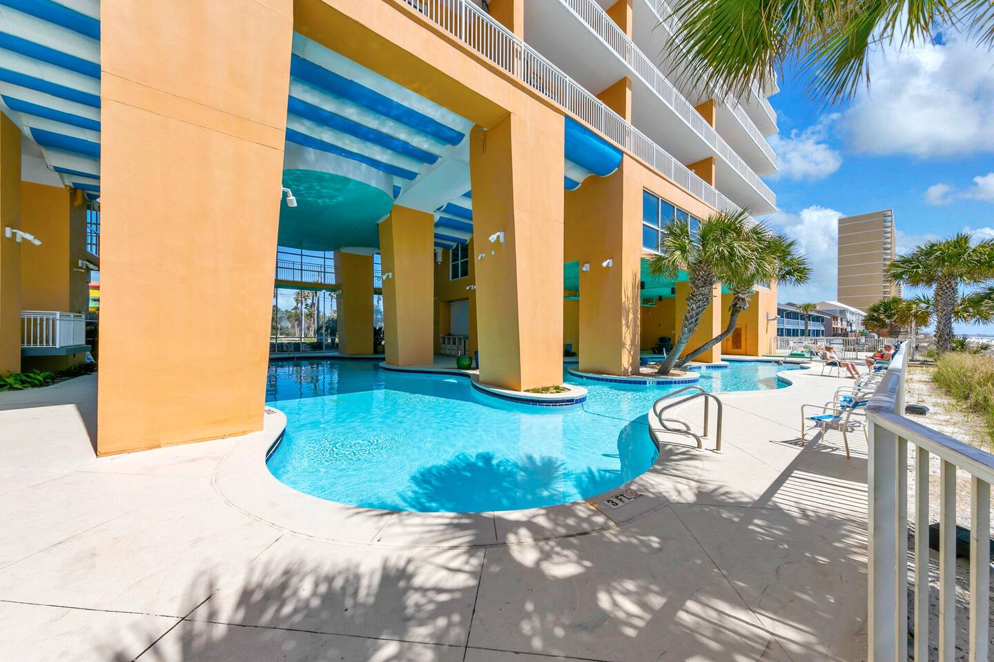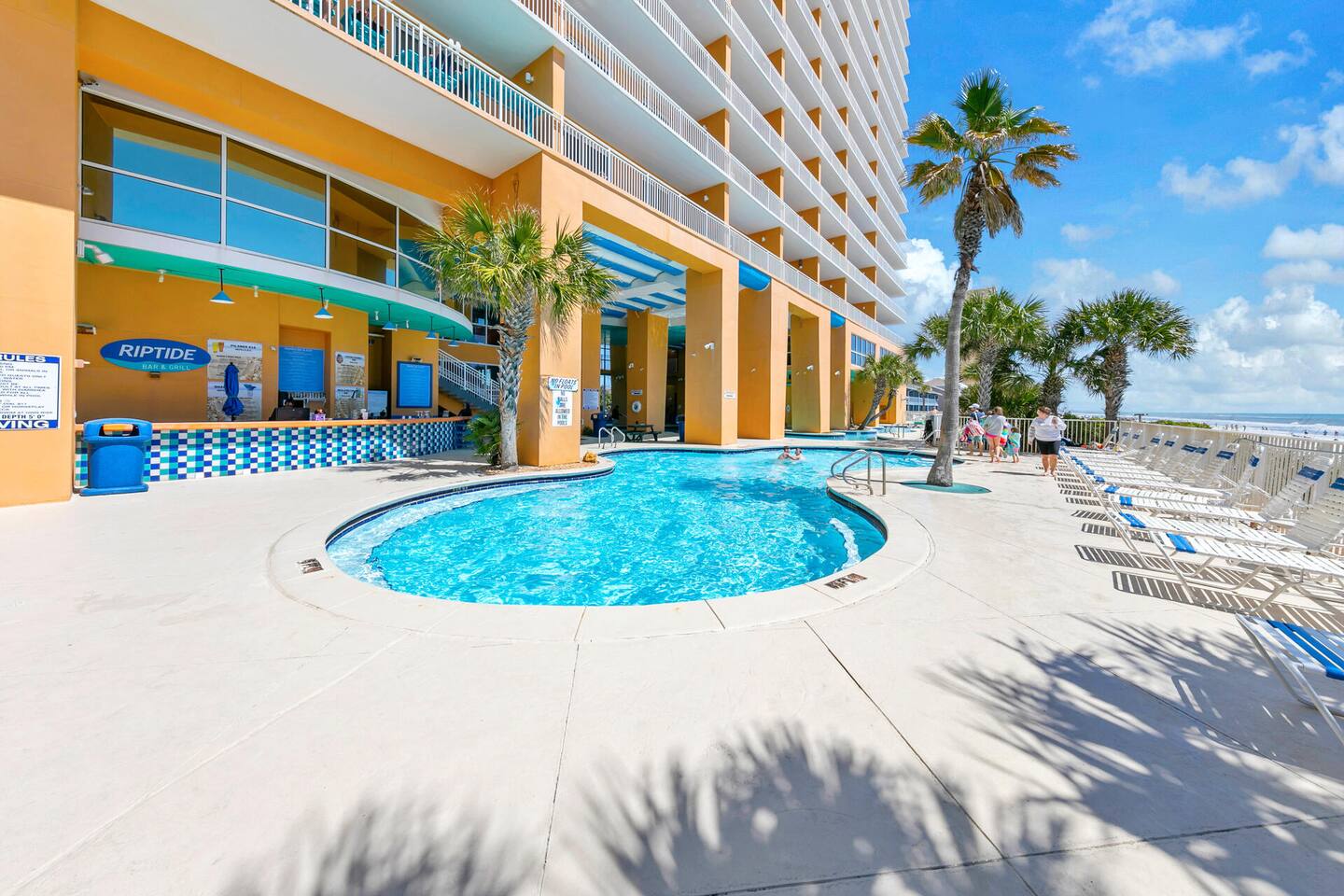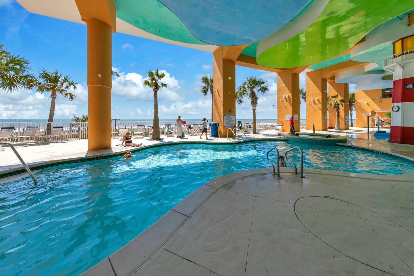 Stay in our beachfront condo Unit 903W at Splash Resort! This 2BR/2BA sleeps up to 8 and includes free seasonal beach service ($50/day value). Enjoy heated pools, lazy river, hot tub, waterpark, and splash pad. Kids love their own bedroom with bunk beds, and TV, while adults relax on the private balcony with stunning views. Fully equipped kitchen, washer/dryer, WiFi, and TVs make it perfect for families.